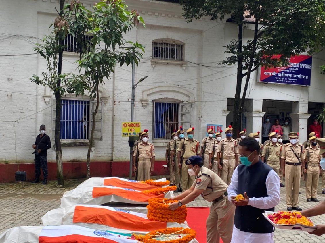 He paid tribute to all five martyrs and was followed by Guardian Minister of Cachar Ashok Singhal, Minister Pijush Hazarika, DGP Assam Police, Bhaskarjyoti Mahanta, deputy commissioner of Cachar Keerthi Jalli. All five of them got killed during the armed Mizo onslaught yesterday at Lailapur in Cachar district.