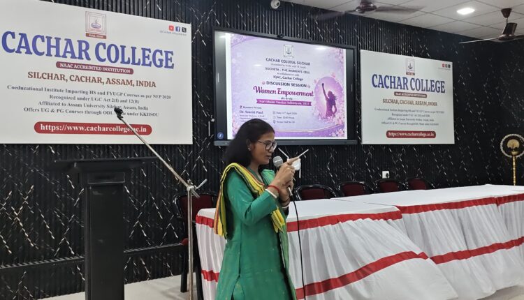 A discussion session on “Women Empowerment vis-à-vis Nari Shakti Vandan Adhiniyam, 2023” was organised by the Women’s Cell ‘Sucheta’ in collaboration with IQAC at Cachar College, Silchar, on April 11.