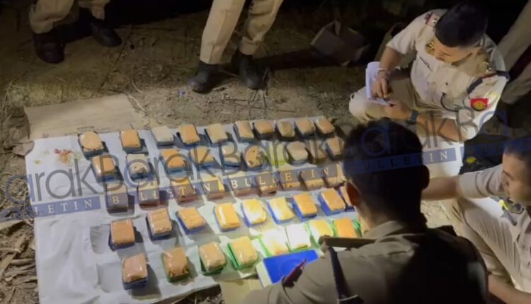 A major drug recovery operation under Lakhipur Police Station led to the seizure of 664 grams of suspected heroin, valued at around Rs. 3.5 crore in the black market. Police recovered the narcotics hidden in the jungle area of Jujang Hills under Lakhipur Police Station’s jurisdiction, following information obtained from one of the arrested accused.