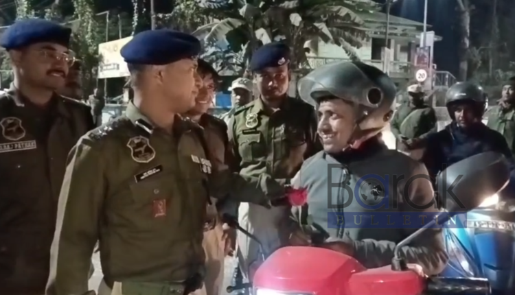 Helmet for Violators, Rose for Rule Followers as Cachar Police Push Road Safety