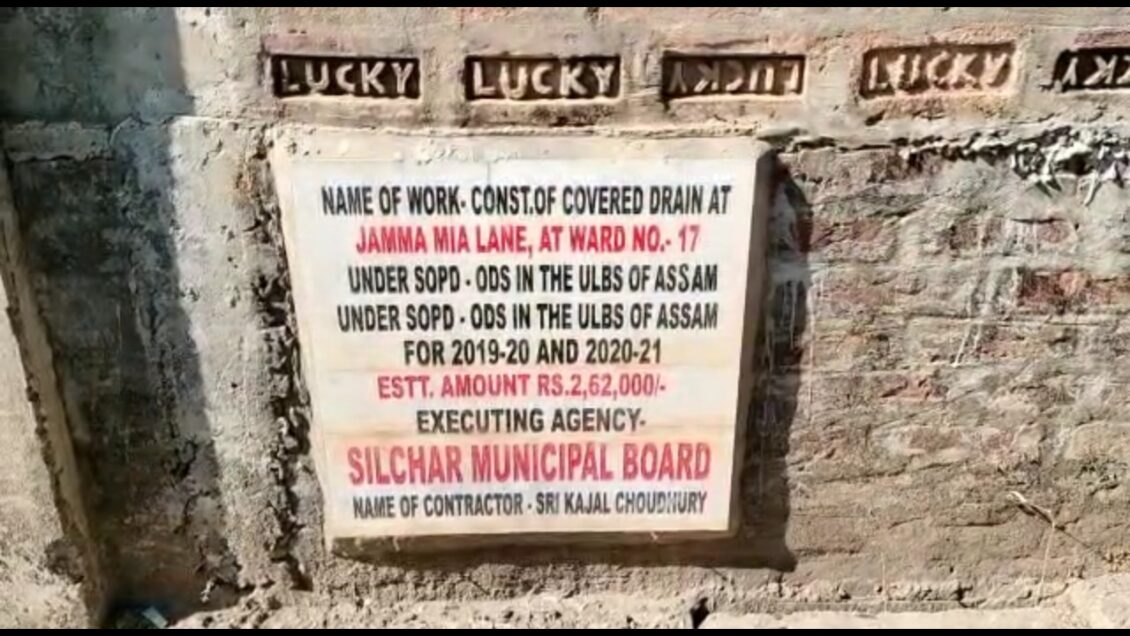 A lane in Silchar’s Kathal Road falls both within the jurisdiction of Silchar Municipal Board’s Ward Number 17 and Meherpur Gaon Panchayat. When the side drain for Kathal Road’s AJK Lane was sanctioned, both Silchar Municipal Board and Meherpur GP became the executing agency for opposite sides of the road. Under the 14th Finance Commission of 2017-18 in the second instalment, 6 lakh 52 thousand rupees was sanctioned for the construction of the side drain for the road. The foundation stone was also laid by Milu Rani Sutradhar, the GP President but the locals alleged that the work was executed without any plan and the GP President formed an alliance with the Secretary and Local Member and looted the whole amount by forging some signatures.