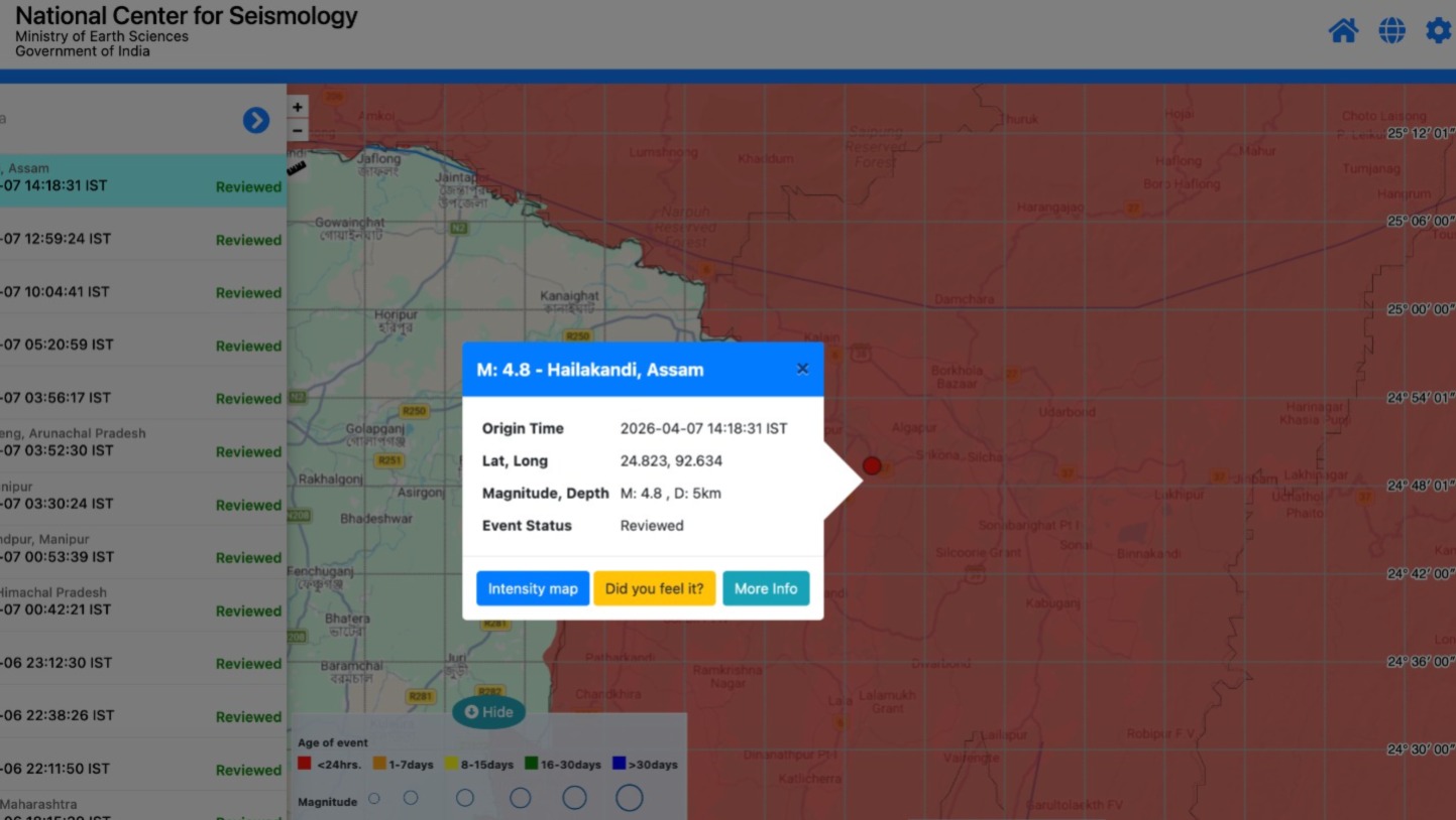 The government’s earthquake report also places the Hailakandi event among the more significant tremors recorded in the region on Monday. On the National Center for Seismology portal, the earthquake was listed as the strongest among the reviewed events visible at the time.