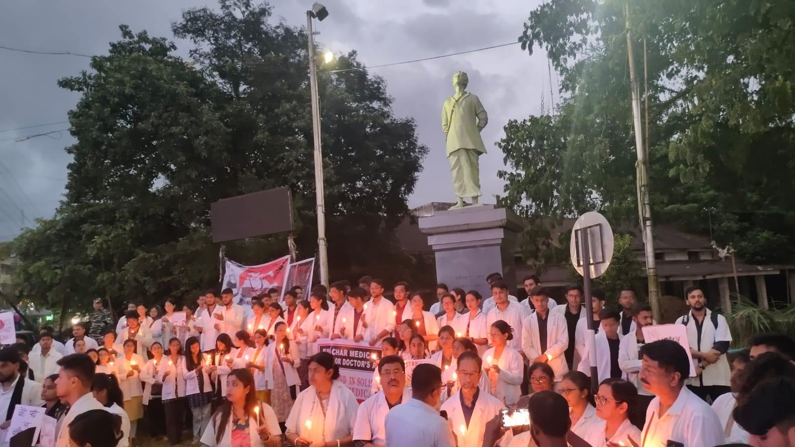 The last leg of the protest, held this Sunday, saw a powerful show of unity as the Junior Doctors were joined by the Principal of the medical college, senior faculty members, and the teacher’s association. Together, they chanted slogans, performed a stirring street play, and held a candlelight vigil at the Khudiram Bose statue on Club Road, Silchar, making a resounding statement in support of their cause.